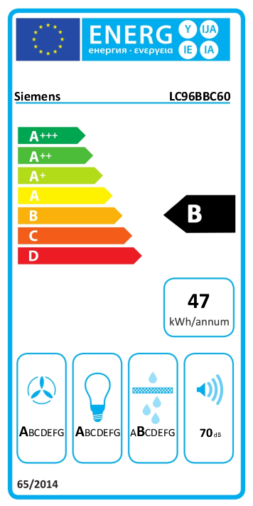 Energieeffizienzklasse ... auf einer Skala von A+++ (höchste Effizienz) bis D (geringste Effizienz)